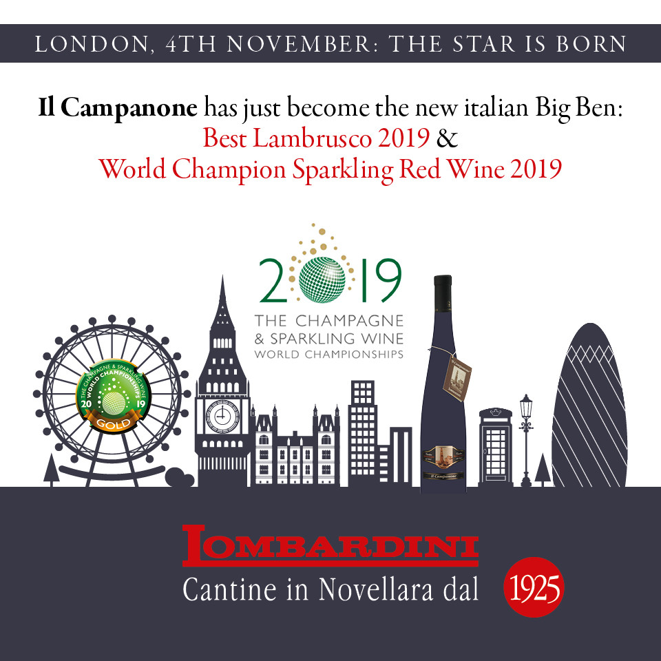 Durante la cena di gala, il nostro Lambrusco Campanone, è stato valutato tra le migliori bollicine al mondo, aggiudicandosi il premio WORLD CHAMPION SPARKLING RED WINE 2019, ovvero, “Miglior Lambrusco al Mondo 2019”.
