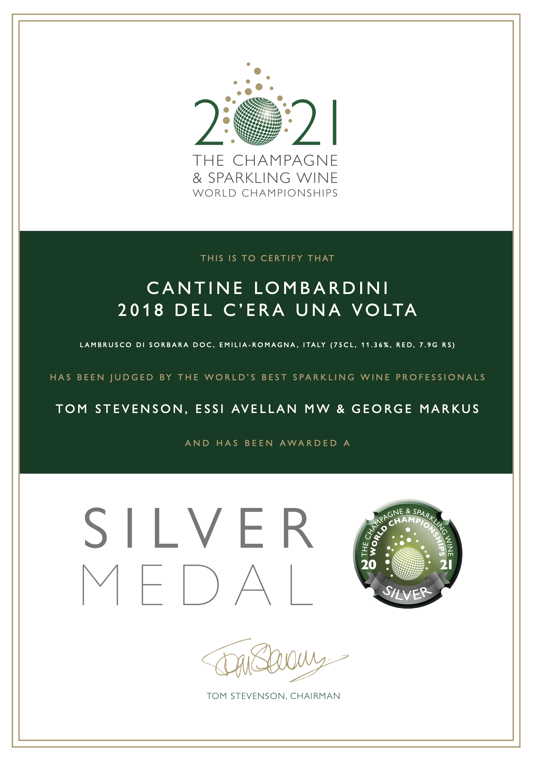 - Sorbara Doc Lambrusco Rosso Secco " Del C'era una Volta" medaglia di bronzo al Decanter World Wine Awards 2018