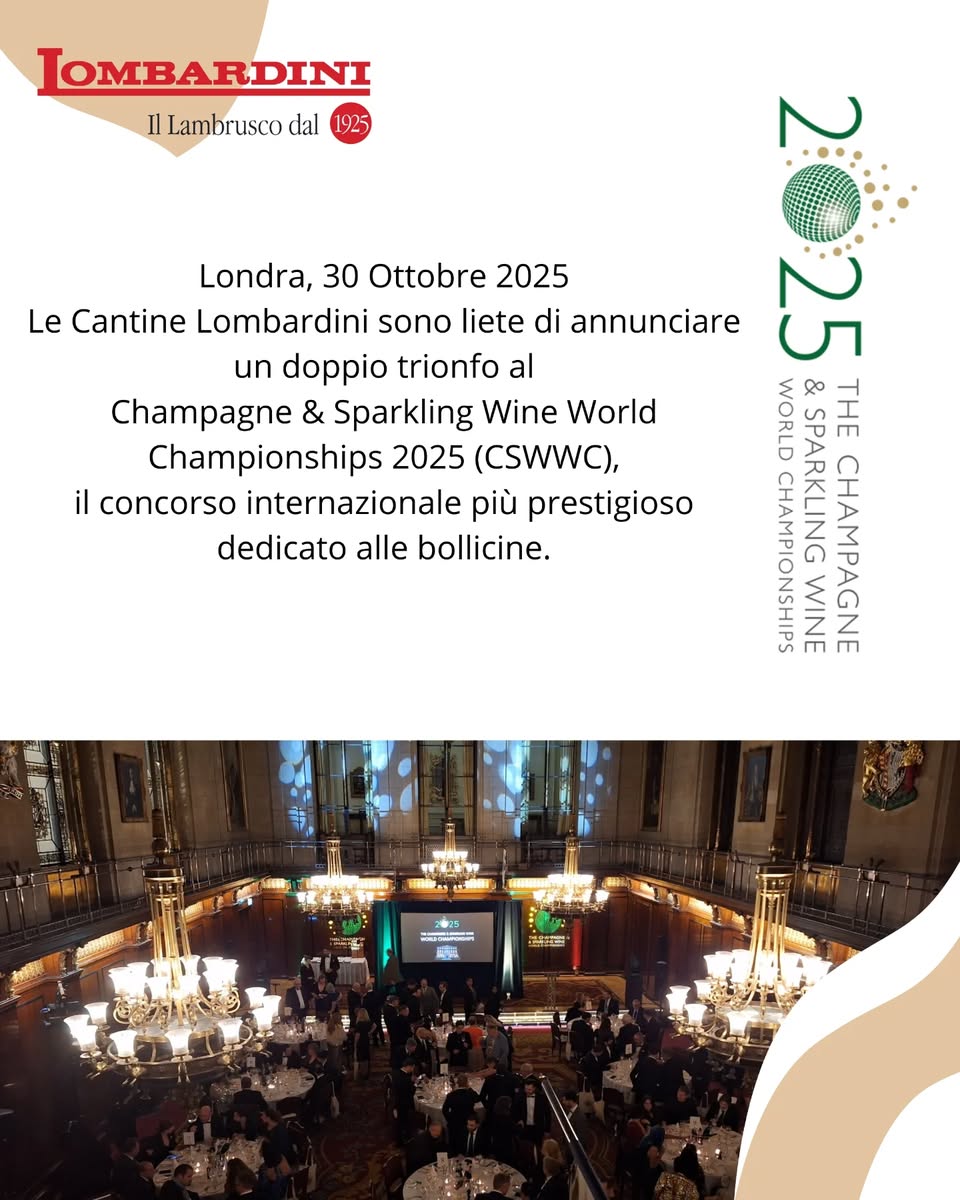 Un grande orgoglio per la nostra famiglia e per tutto il territorio: il nostro Lambrusco ha conquistato due medaglie d’oro al prestigioso concorso internazionale The Champagne & Sparkling Wine World Championship 2025 di LONDRA.