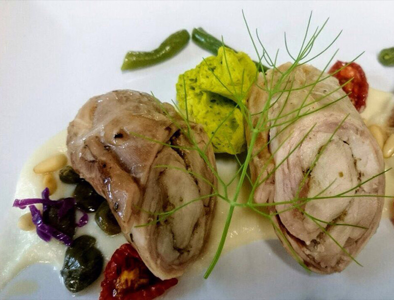 ROLLE’ DI CONIGLIO SU CREMA DI CAVOLFIORE E SPUGNA DI PREZZEMOLO