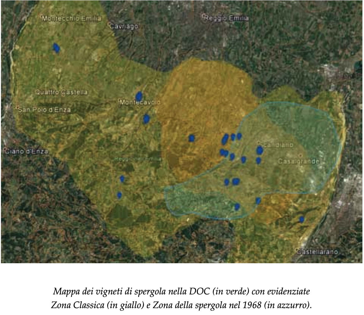 Risulta doveroso mettere in evidenza l’alta percentuale di vigneti di età superiore ai trent’anni, la maggior parte dei quali si trova in quella che il disciplinare della DOC Colli di Scandiano e di Canossa definisce la Zona Classica, cioè quella storicamente più antica della coltivazione di questo vitigno. Ciò ha permesso la sopravvivenza di un patrimonio di biodiversità non comune per la viticoltura contemporanea, che getta le basi per un futuro di grandi potenzialità qualitative per la spergola.
