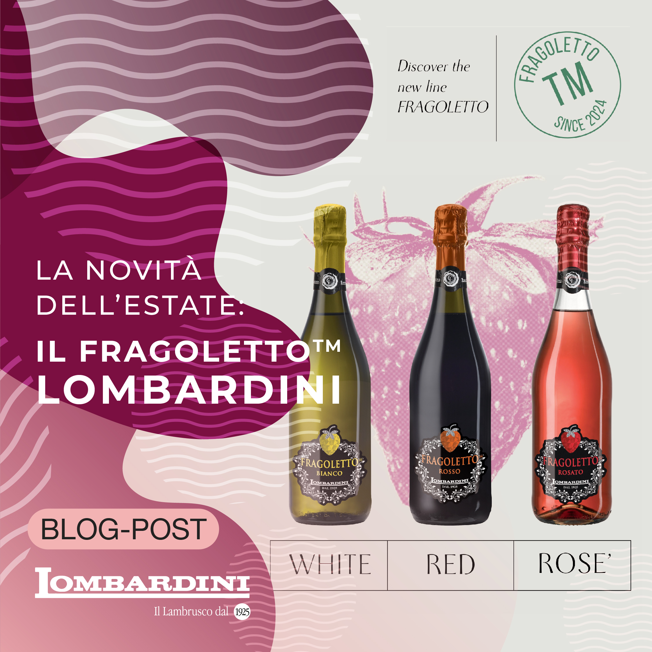 Nasce perciò il Fragoletto™, un vino - e non una bevanda aromatizzata - ottenuto dalla lavorazione dell'uva Lambrusco, e quindi un modo giovane, moderno e genuino di bere. La nostra cantina, attiva dal 1925, vicina al centenario, e sita nel centro storico di Novellara, lo propone in tre diverse versioni: bianco, rosato e rosso.