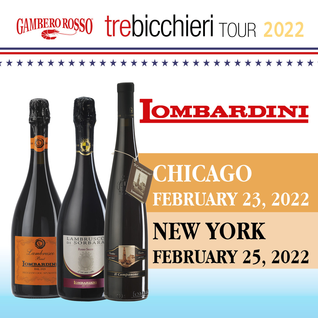 Anche quest'anno saremo presenti al Tre Bicchieri Tour negli Stati Uniti organizzato dal Gambero Rosso, un'importante vetrina italiana nel mondo: la nostra cantina sarà presente nelle tappe di Chicago, il 23 Febbraio, e di New York, il 25 Febbraio.