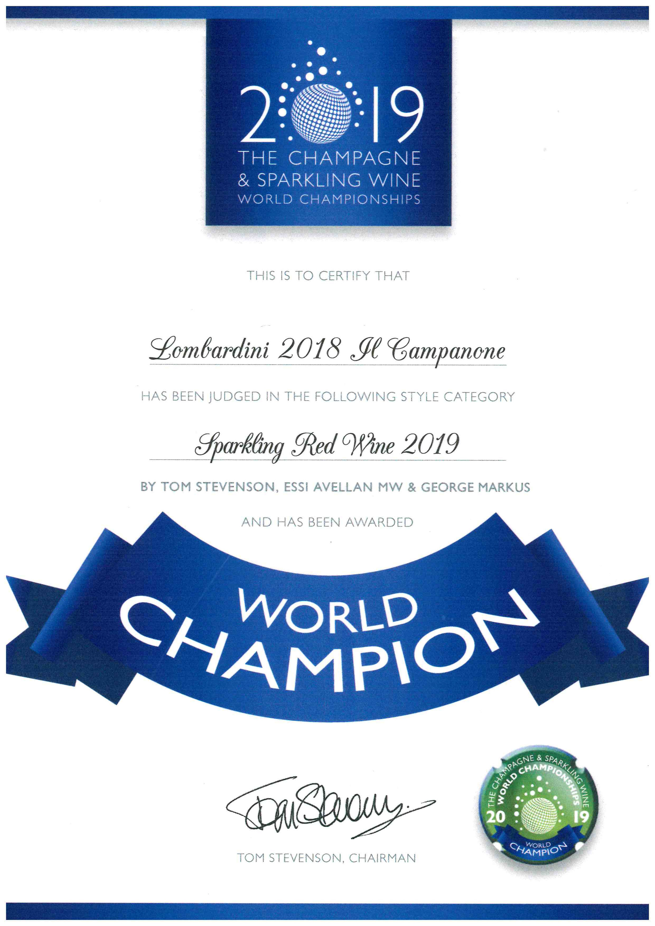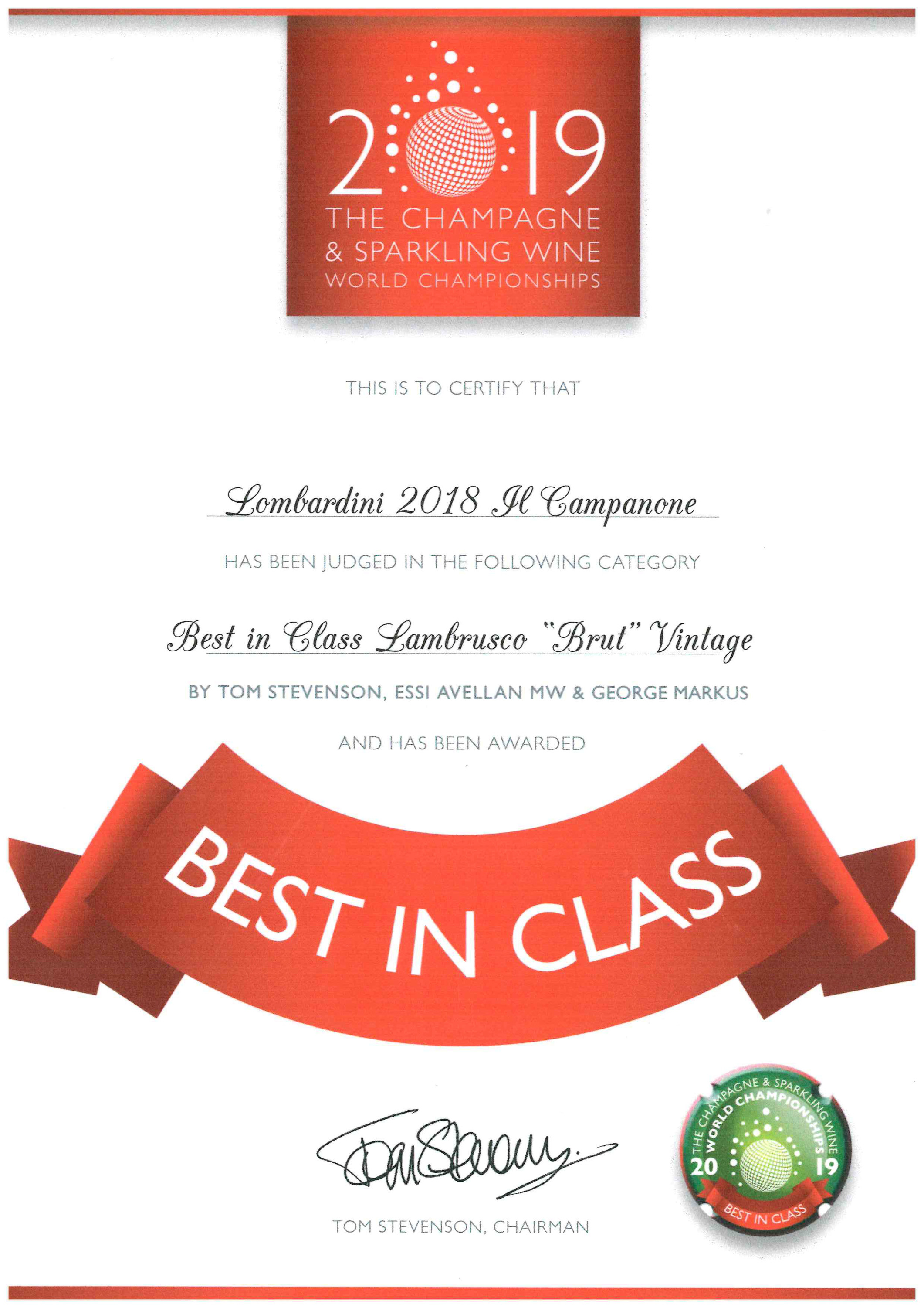 Campanone: BEST IN CLASS & WORLD CHAMPION SPARKLING RED WINE 2019