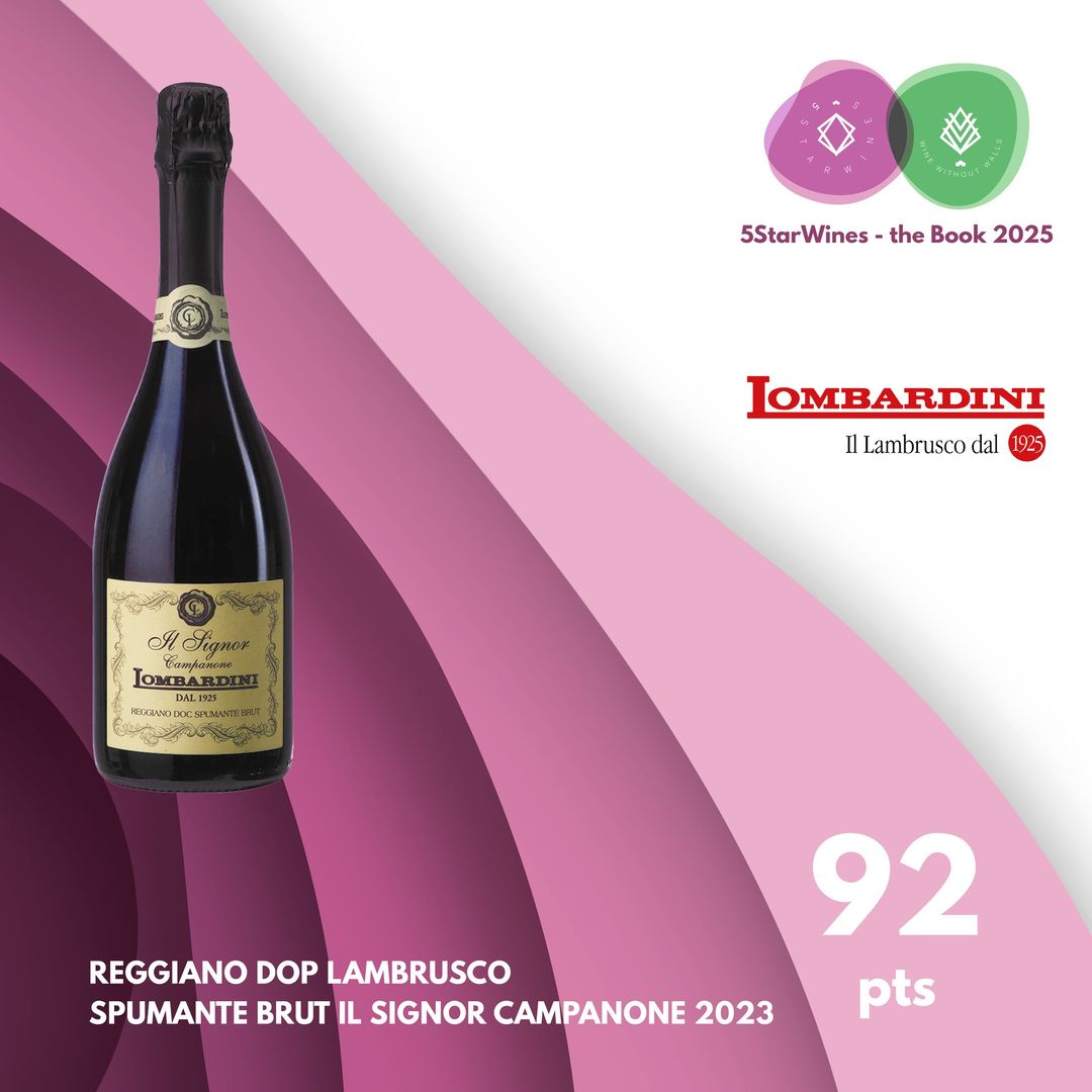 Cantine Lombradini è orgogliosa di essere stata selezionata ancora una volta da 5 Star Wines: ecco come descrive il nostro Reggiano DOP Lambrusco Spumnate Brut Il Signor Campanone 2023.