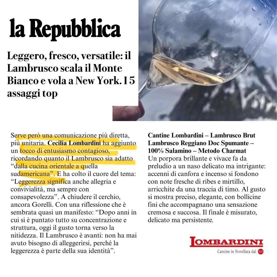 Nell'articolo pubblicato da La Repubblica, si parla dell'evento che ha avuto luogo sulle vette alpine del Monte Bianco: il World Lambrusco Day 2025. L'evento ha portato in scena un vino che si reinventa con stile, senza mai rinnegare le sue radici ''IL LAMBRUSCO''.